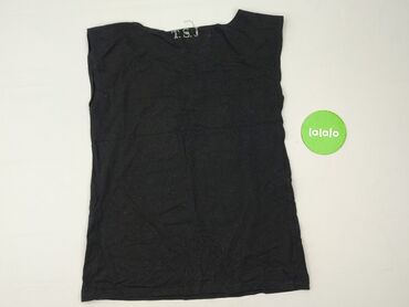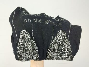 Czarna koszulka damska Sinsay, rozmiar S. - Krój: t-shirt z krótkim rękawem, okrągły dekolt z prążkowaną listwą - Kolor: czarny - Ozdoby: aplikacje/kryształki na przodzie po obu stronach klatki pi...