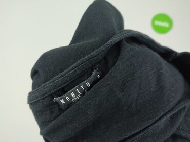 Czarna koszulka damska MOHITO, rozmiar S. - Krój: klasyczny T-shirt z krótkim rękawem i okrągłym dekoltem - Kolor: czarny - Ozdoba: pasy i napisy „MOHITO” ułożone z drobnych, błyszczących dżetów n...