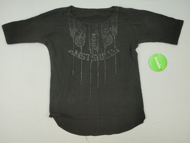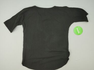Czarna bluzka damska MONITO, rozmiar S. - Krój: dopasowany, z krótkim rękawem - Materiał: przód i boki z fakturowanej dzianiny w drobny, kropkowany wzór; tył gładki, miękki jersey - Dekolt: okrągł...