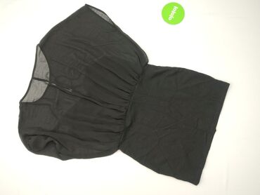 Czarna sukienka z krótkim rękawem, charakteryzująca się kwadratowym dekoltem i dekoracyjnymi marszczeniami z przodu, które dodają jej unikalnego stylu. Wykonana z materiału zapewniającego elastyczn...Stan:
