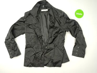 Damska marynarka BASTET, rozmiar 36. - Kolor: ciemny brąz/czekoladowy z delikatnym połyskiem (satynowy efekt) - Krój: taliowany, podkreślający sylwetkę; lekko krótsza długość - Zapięcie: jeden ozd...