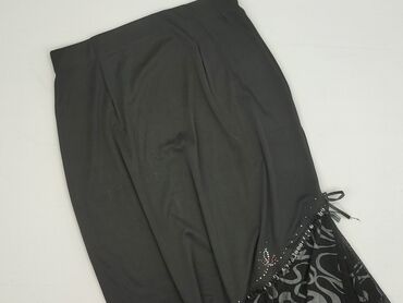Czarna spódnica midi z półprzezroczystej, ażurowej tkaniny w pionowe pasy. - Fason: ołówkowy, lekko zwężany ku dołowi, z efektownym, zaokrąglonym rozcięciem/prześwitem z przodu po prawej stronie. ...Stan:
