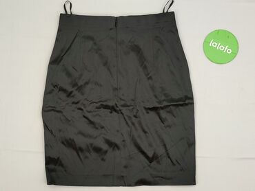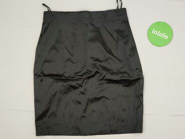 Czarna spódnica ołówkowa WOMEN, rozmiar L. - Klasyczny, prosty krój do kolan - Elastyczny pas dla wygodnego dopasowania - Delikatne wiązanie/sznurkowe oczka z metalowymi przelotkami po lewej stroni...