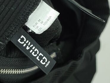 Czarna spódnica H&M Divided - Krój: rozkloszowana, lekko trapezowa, mini - Talia: szeroki pas w talii - Zapięcie: metalowy zamek z tyłu - Materiał: dzianina elastyczna (skład z metki: 68% wiskoza, ...