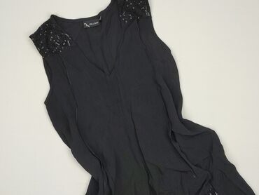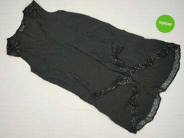 Czarna sukienka mini bez rękawów, o długości do kolan. Sukienka ma okrągły dekolt i jest ozdobiona w pasie czarną koronką z drobnymi, białymi cekinami, co nadaje jej elegancki charakter. Materiał, ...
