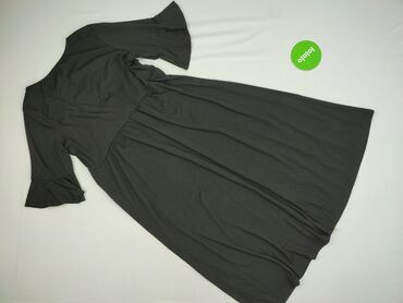 Sukienka damska czarna, rozmiar S. - Fason: lekko rozkloszowana, długość do kolan (widoczna falbanka na dole). - Dekolt: szeroki, z ozdobną koronkową wstawką w kształcie litery V z kwiatowym motyw...