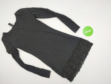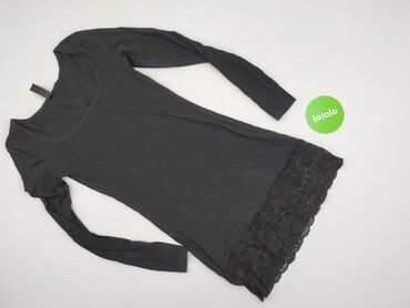 Czarna sukienka z dzianiny - Krój: dopasowana mini, z przeszyciem w talii i lekkimi marszczeniami po bokach, które podkreślają sylwetkę. - Rękawy: długie. - Dekolt: łódka. - Materiał: elastyczna, ...