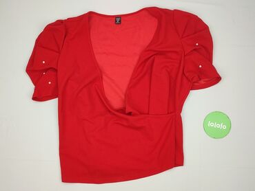 Czerwony top damski z krótkim rękawem i dekoltem w szpic, zapinany na cztery białe guziki. Wykonany z miękkiego materiału, który jest przyjemny w dotyku. Idealny do noszenia na co dzień, sprawdzi s...