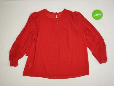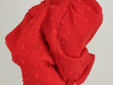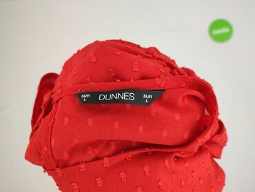 Długi rękawCzerwona bluzka marki Dunnes, wykonana z szyfonu, charakteryzująca się drobnym wzorem w kropki. Posiada okrągły dekolt z rozcięciem w kształcie łezki, zapinany na guzik, oraz ozdobną szarfę wiązaną przy szyi. Długie rękawy są bufiaste na ramionach i zakończone gumką, co dodaje im eleganckiego wyglądu. Idealna do stylizacji zarówno codziennych, jak i na specjalne okazje. Materiał to 100% poliester.