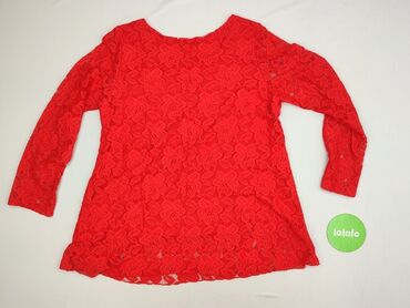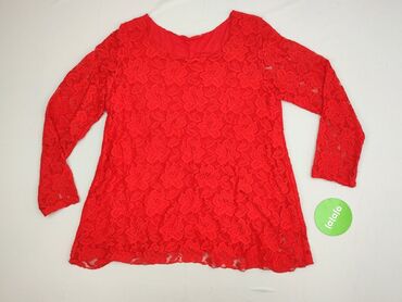 Bluzka damska z koronką – czerwona - Krój: prosty, z okrągłym dekoltem - Rękawy: do łokcia (ok. 3/4), w całości z ażurowej koronki o kwiatowym wzorze - Wstawka koronkowa także na górnej części prz...