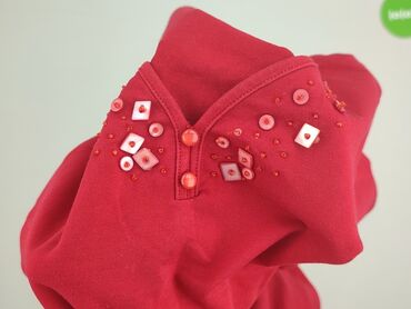 Czerwona koszulka damska z krótkim rękawem - Marka: Hamal (metka na karku) - Kolor: intensywna czerwień - Krój: klasyczny T-shirt, okrągły dekolt - Ozdoby: aplikacja z błyszczących dżetów/cekinów ...