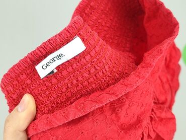 Na co dzieńMini spódnica w kolorze czerwonym marki George. Charakteryzuje się rozkloszowanym fasonem z marszczeniami, co nadaje jej lekkości i zwiewności. W pasie znajduje się elastyczna gumka z drobnymi marszczeniami, zapewniająca komfortowe dopasowanie. Spódnica wykonana jest z materiału z subtelnym wzorem w kropki, co dodaje jej uroku. Idealna na co dzień, na ciepłe dni lub do stylizacji casualowych.