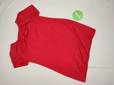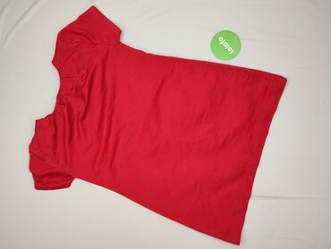 Sukienka damska w kolorze intensywnej czerwieni. - Fason: luźny, z odcięciem w talii i kilkoma poziomymi marszczeniami/zakładkami tworzącymi objętościowy dół. - Dekolt: okrągły. - Rękaw: krótki. -...Stan:
