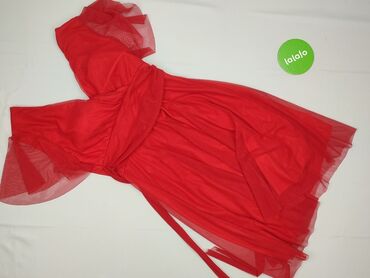 Czerwona sukienka Italy Fashion, rozmiar M - Fason: rozkloszowana, z odcięciem w talii - Rękaw: krótki - Dekolt: okrągły z łezką i ozdobną białą kokardką z perełkami - Materiał: 95% poliester, 5% ...