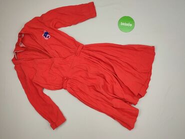 Czerwona sukienka z dzianiny wiskozowej z dodatkiem elastanu. Luźny, lekki fason z opadającym rękawkiem typu kimono i okrągłym dekoltem. W talii tunel z troczkiem do regulacji obwodu, dzięki czemu ...
