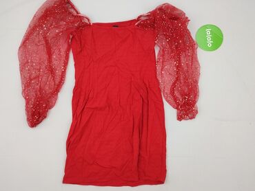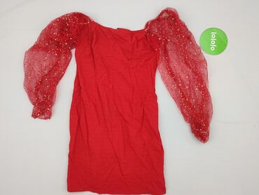 Czerwona sukienka w białe grochy – I SAW IT FIRST, rozmiar 8 (UK) - Fason: mini, kopertowy/aszmetryczny z falbanami - Dekolt: jeden rękaw, odkryte jedno ramię (one-shoulder) - Rękaw: długi, z szer...