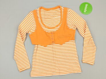 Bluzka damska My Basic – długi rękaw - Kolor: intensywny pomarańcz z białymi, poziomymi pasami - Krój: lekko dopasowany, za biodra - Dekolt: okrągły, z listwą guzikową (kilka guzików z przodu) - R...