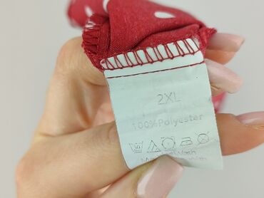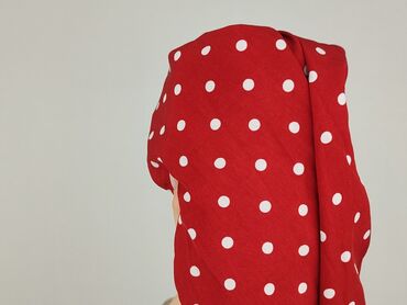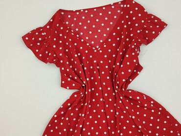 Czerwona sukienka w białe grochy - Krój: luźny, lekko zwężany w talii, dół za kolano (na zdjęciach widać dłuższy tył – delikatny high-low). - Dekolt: okrągły, z niewielkimi zakładkami na środku. -...Stan: