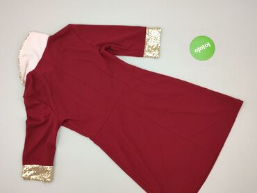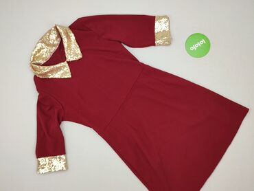 Sukienka damska z połyskiem – kolor ciemnoczerwony/burgund ze srebrzystą nitką - Krój: dopasowana góra, rozkloszowany dół; długość mini - Rękaw: długi - Dekolt: głęboki V na plecach, okrągły z prz...