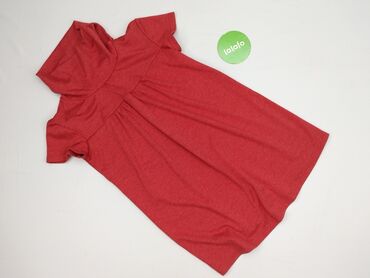 Czerwona sukienka/tunika z miękkiej dzianiny - Fason prosty, lekko rozszerzany ku dołowi - Dekolt w kształcie litery V - Krótkie rękawy z delikatną falbanką - Materiał elastyczny, gładki, przyjemny...Stan: