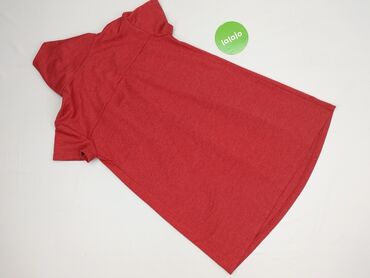 Czerwona sukienka/tunika z miękkiej dzianiny - Fason prosty, lekko rozszerzany ku dołowi - Dekolt w kształcie litery V - Krótkie rękawy z delikatną falbanką - Materiał elastyczny, gładki, przyjemny...