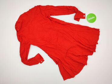 Czerwona damska tunika/bluzka z krótkim rękawem - Marka: Fashion (na metce) - Rozmiar: L - Krój: tunikowy, lekko rozkloszowany dołem; odcięcie pod biustem z delikatnymi zakładkami - Dekolt: głębok...