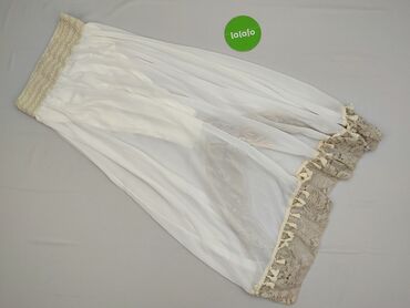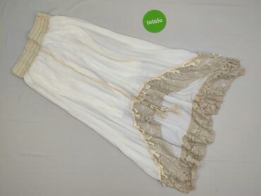 Subtelny odcień ecru/bieli z beżowymi koronkami nadaje spódnicy elegancki, dziewczęcy charakter. Pas dobrze dopasowuje się do sylwetki i podkreśla talię, a zwiewny materiał pięknie układa się w ruchu. Idealna dla kobiet ceniących wygodę i styl boho. Condition: Ideal; Newness condition: Used.