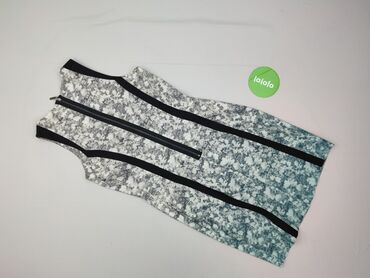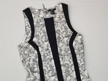 Sukienka H&M, rozmiar EUR 38 (US/CA 8, CN 165/88A, MX 8). - Krój: dopasowana, bez rękawów, długość za kolano. - Wzór: czarno-białe duże kwiaty z kontrastowymi poziomymi pasami; boki w czerni optyc...