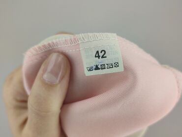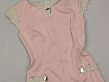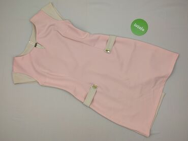 Sukienka M&M w kolorze jasnego pudrowego różu. - Rozmiar: 42 (metka) - Skład: 97% poliester, 3% elastan - Fason: ołówkowy, długość za kolano - Dekolt: okrągły - Rękawy: krótkie, z wstawkami z półt...