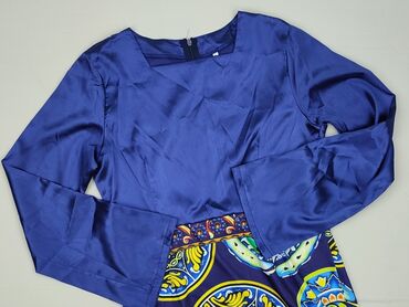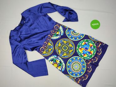 Sukienka damska z długim rękawem, w drobny kwiatowy wzór na granatowym tle. Fason: rozkloszowany dół, odcinana w talii, okrągły dekolt. Długość midi. Materiał: 100% poliester (na metce). Rozmiar z ...