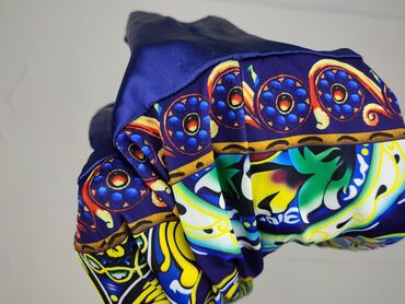 - Góra: gładka, satynowa tkanina w kolorze intensywnego granatu; długi rękaw; dekolt w kształcie litery V