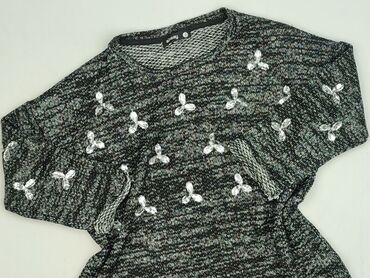 Bluzka Sinsay damska - Rozmiar: L (z metki) - Skład: 100% wiskoza – lekka, przewiewna tkanina - Kolor/wzór: czarne tło w drobny, nieregularny, kwiatowo-abstrakcyjny nadruk w odcieniach bieli, czer...
