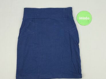 Granatowa spódnica damska ESERED (YFL), rozmiar S. - Fason: prosta, przed kolano - Materiał: 75% bawełna, 25% poliester – miękka, elastyczna dzianina - Talia: elastyczna guma + szlufki - Pasek: sz...