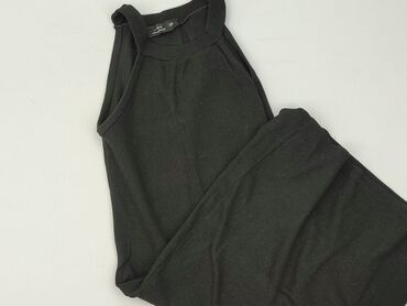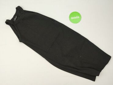 Czarna sukienka bez rękawów, ołówkowa/mała czarna. - Fason: dopasowany, długość midi - Dekolt: zabudowany, typu halter z wąskimi ramiączkami - Materiał: elastyczna, prążkowana dzianina (cienka, mię...