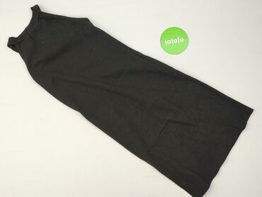 Czarna, prążkowana sukienka midi na ramiączkach - Fason: dopasowana, długość midi, lekko rozszerzana na dole z delikatnie falowanym brzegiem - Dekolt: prosta linia z marszczeniem; cienkie, wiązane...Stan: