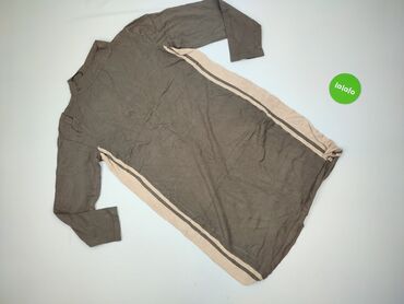 Sukienka dzianinowa z krótkim rękawem, Made in Italy - Fason: lekko rozkloszowany, długość mini/tunika; karczek i dół z falbaną - Kolorystyka: ciemny brąz z oliwkowo‑szarymi wstawkami - Dekolt: ma...Stan: