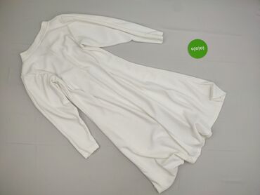 Dzianinowa sukienka z długim rękawem - Kolor: jasny beż/krem - Fason: prosta, dopasowana, długość za kolano - Dekolt: okrągły - Rękawy: długie, wykończone ściągaczem - Dzianina o równym, gęstym sp...