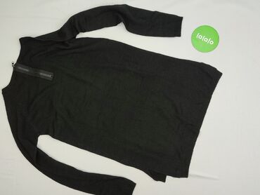Sweter damski z obszernym golfem - Kolor: czarny z drobną, połyskującą nitką (melanż) na wykończeniach - Fason: dopasowany, przedłużany, z dużym miękkim golfem typu komin - Detale: szeroki prążkow...