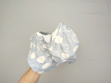 Długi rękawPrzedmiotem ogłoszenia jest damska góra od piżamy w rozmiarze 16-18, w kolorze jasnoniebieskim z białym wzorem w chmurki. Wykonana jest z 95% poliestru i 5% elastanu, co zapewnia komfort i elastyczność. Ma długie rękawy i okrągły dekolt, idealnie nadaje się do spania.