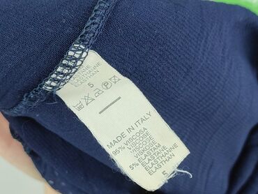 Granatowa bluzka damska w białe kropki, Made in Italy. - Materiał: 100% wiskoza (metka widoczna na zdjęciu) - Krój: luźny, lekko wydłużony - Dekolt: V z wiązaniem/paskiem do zawiązania pod szyją -...Stan: