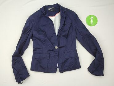 Marynarka damska Reserved - Marka: Reserved - Model: klasyczny, bez klap, zapinanie z przodu (ukryte zapięcie) - Kolor: granatowy - Rozmiar z metki: EUR 38 (UK 10) - Fason: taliowany, dopasowany d...