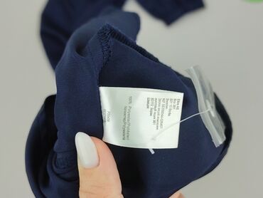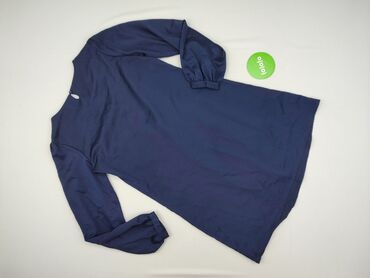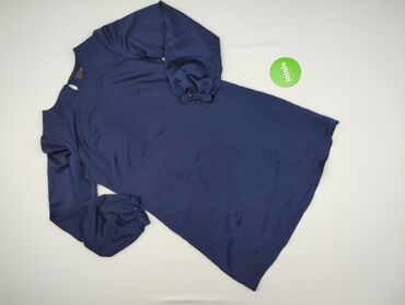 Granatowa sukienka z dekoltem w kształcie litery V, zapinana na guziki z przodu. Posiada elastyczną talię, która podkreśla sylwetkę, oraz bufiaste rękawy o długości do łokcia, zakończone mankietami...