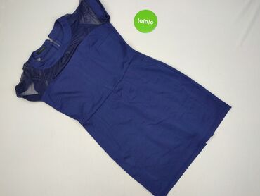 Granatowa sukienka z koronką - Krój: ołówkowy/tuba, długość przed kolano - Dekolt i rękawki wykończone ażurową, szydełkową koronką (przód i tył) - Dwie naszywane kieszenie z przodu, także z ażurow...
