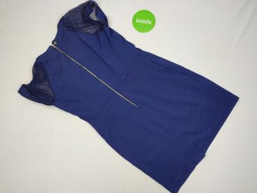 Granatowa sukienka B&T (Beti & Car) – rozmiar 40 - Krój: prosta, ołówkowa, długość za kolano - Rękawy: 3/4 - Dekolt: łódkowy z dwoma ozdobnymi metalowymi oczkami z przodu; dodatkowe oczko na jedny...