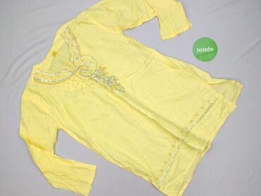 Długi rękawŻółta tunika damska z długim rękawem, ozdobiona haftem i cekinami w pastelowych odcieniach zieleni, bieli i beżu na dekolcie oraz wzdłuż linii rozcięcia. Krój z długim rękawem, luźny i lekki, idealny do codziennego noszenia, zapewniający komfort i swobodę ruchów. Tunika jest w rozmiarze L, co gwarantuje wygodne dopasowanie dla wielu sylwetek. Doskonała do stworzenia stylizacji casualowych.