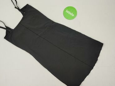 Czarna sukienka na ramiączkach - Krój: prosty, lekko rozszerzany ku dołowi, odcięcie w talii - Dekolt: delikatnie zaokrąglony - Ramiączka: cienkie, podwójne - Długość: midi (na zdjęciach sięga pon...Stan: