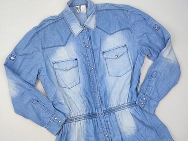 Sukienka/ tunika jeansowa H&M – niebieska - Fason: luźna, koszulowa tunika o wydłużonej długości (za kolano/okolice kolan zależnie od wzrostu) - Dekolt: V z krótką listwą guzikową (4 metalowe guzi...