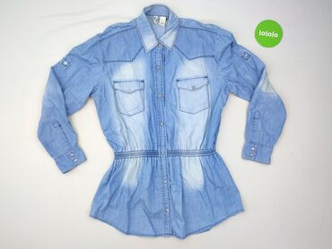 Sukienka/ tunika jeansowa H&M – niebieska - Fason: luźna, koszulowa tunika o wydłużonej długości (za kolano/okolice kolan zależnie od wzrostu) - Dekolt: V z krótką listwą guzikową (4 metalowe guzi...Stan: