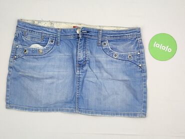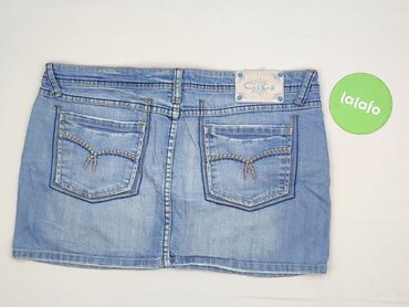 Jeansowa spódnica damska - Kolor: jasny denim, efekt sprania - Fason: mini, wysoki stan z marszczoną talią „paperbag” - Zapięcie: suwak i guzik z przodu - Szlufki na pasek - Kieszenie: 2 przednie ...