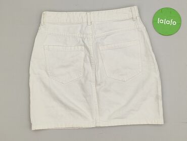 Biała jeansowa spódnica mini marki Cropp, wykonana w 100% z bawełny. Fason mini z prostym krojem zapewnia wygodę noszenia. Spódnica posiada zapięcie na guzik i zamek błyskawiczny. Wyposażona jest w pięć praktycznych kieszeni: dwie z przodu, jedną małą kieszonkę na monety oraz dwie kieszenie z tyłu. Idealna do codziennych stylizacji.